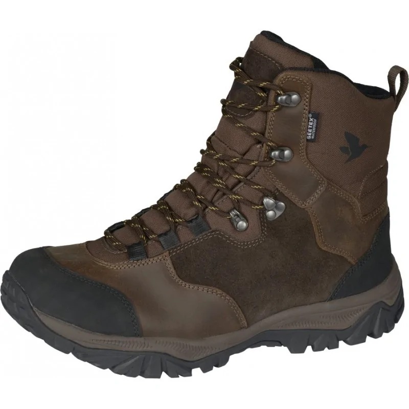 Buty wyposażone są w elastyczną przednią część stopy oraz wzmocniony łuk ze szklanego włókna, co gwarantuje komfort i stabilizację podczas ruchu. Membrana SEETEX® zapewnia wodoodporność i oddychalność, utrzymując stopy suche nawet w najtrudniejszych warunkach. Cholewka wykonana z połączenia skóry, nubuku, gumy i przewiewnej siatki zapewnia trwałość i wentylację, a podeszwa z pianki EVA i zewnętrzna guma antypoślizgowa dbają o przyczepność i amortyzację. Dodatkowo, pięty i palce zostały wzmocnione gumą dla lepszej ochrony.