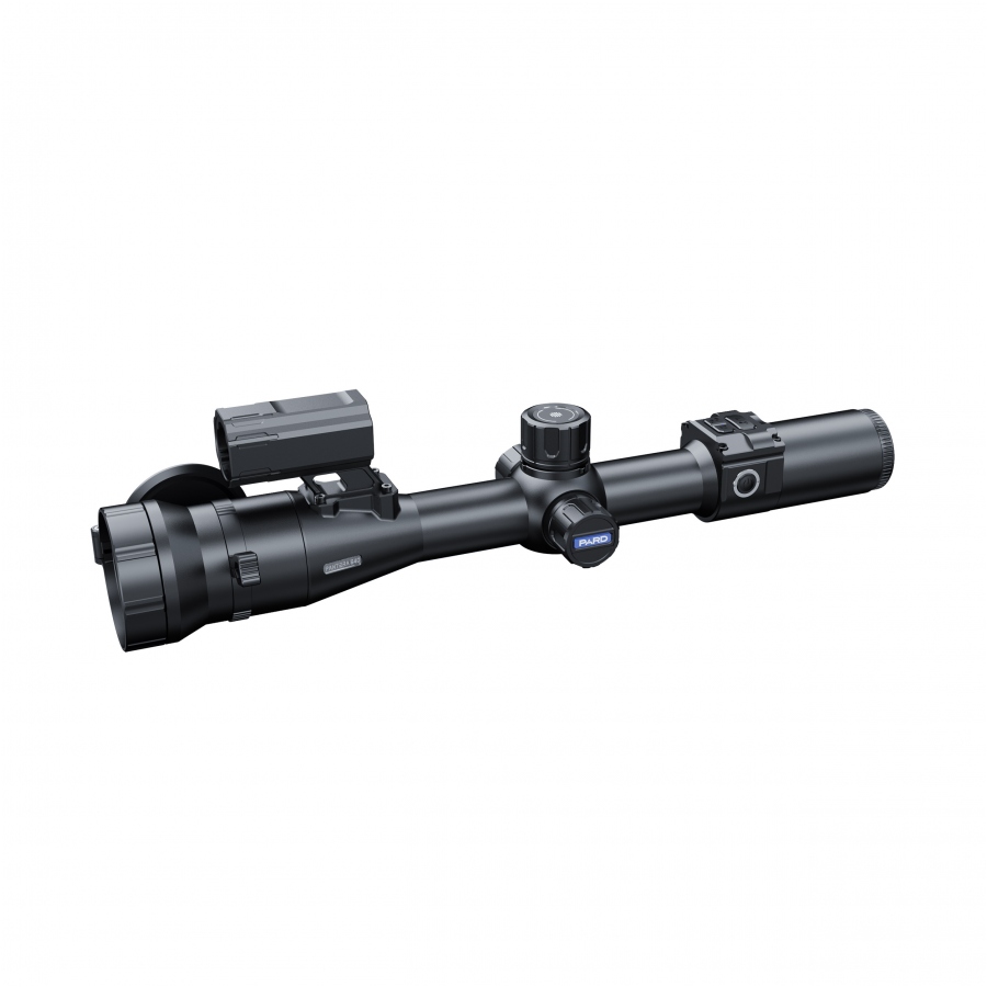 Dla wsparcia strzelca przy oddawaniu dalekich strzałów, celownik PARD Pantera wyposażono w dalmierz laserowy o zasięgu do 1000 metrów. Pomiary odległości współgrają z dokładnym kalkulatorem balistycznym, który uwzględnia opad kuli. Myśliwy odczytuje wszystkie dane wprost z okrągłego wyświetlacza IPS LCD, a dzięki użytecznej funkcji PiP (obraz w obrazie) precyzyjne celowanie nie ogranicza szerszego pola widzenia.