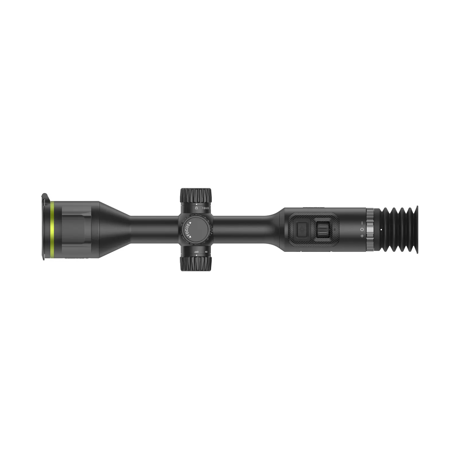 Ocena odległości w całkowitej ciemności na rozległym terenie często bywa złudna. Wbudowany dalmierz laserowy, płynnie współpracujący z kalkulatorem balistycznym, to gwarancja idealnego trafienia. System automatycznie przelicza opad pocisku na podstawie zmierzonego dystansu, podpowiadając właściwy punkt celowania. Dodatkowo, funkcja PiP (Obraz w obrazie) oraz zoom cyfrowy 8x pozwalają na precyzyjne naprowadzenie krzyża na cel, bez utraty szerokiego pola widzenia. Zyskujesz pełną pewność i bezpieczeństwo każdego oddanego strzału.