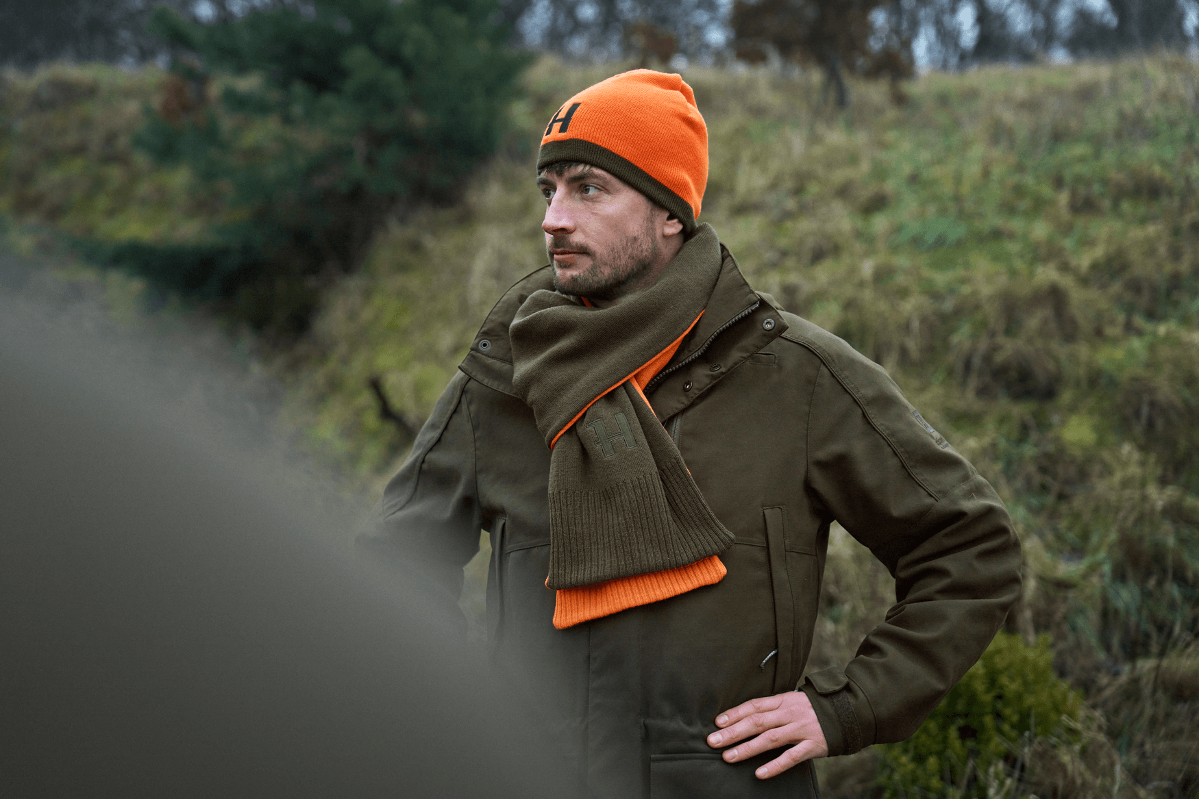 Härkila Willow Green/Orange Reversible Beanie – dwustronna czapka myśliwska z wełną merino