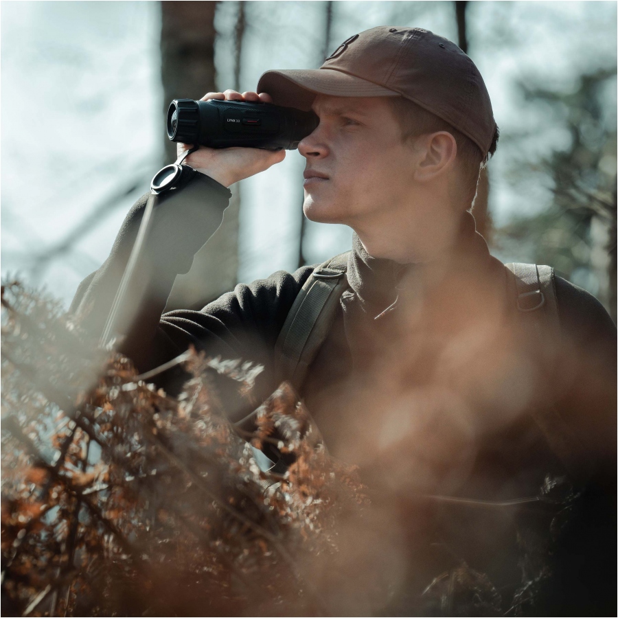 Mimo ogromnych możliwości technologicznych, termowizor ten pozostaje niezwykle lekki (zaledwie 354,5 g) i kompaktowy, z łatwością mieszcząc się w dłoni. Urządzenie oferuje 6 palet kolorystycznych – w tym tryby Green Monochrome i Red Monochrome, które zapobiegają naświetlaniu oka, co pozwala na komfortową, wielogodzinną obserwację. Zasilanie oparto na popularnym, wymiennym ogniwie 18650, a ogromna pamięć 64 GB pozwoli Ci zachować wspomnienia z każdego pomyślnego wyjścia w knieję. W trudnym terenie docenisz wodoszczelność w klasie IP67 oraz duże, intuicyjne przyciski zaprojektowane do obsługi w grubych rękawicach.