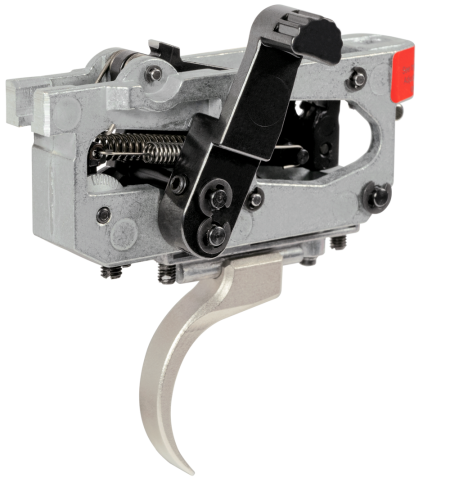 Za najwyższą powtarzalność trafień odpowiada sportowy spust 5082 klasy match, wyróżniający się eleganckim, złotym wykończeniem. Użytkownik ma możliwość wyboru trybu pracy (jedno- lub dwustopniowy) oraz płynnej regulacji oporu w zakresie od 400 do 1550 gramów. Spersonalizowanie punktu przełamania zapobiega zrywaniu strzałów, gwarantując maksymalną precyzję uderzenia w cel nawet podczas wymagających strzelań na dalekie odległości w otwartym terenie.