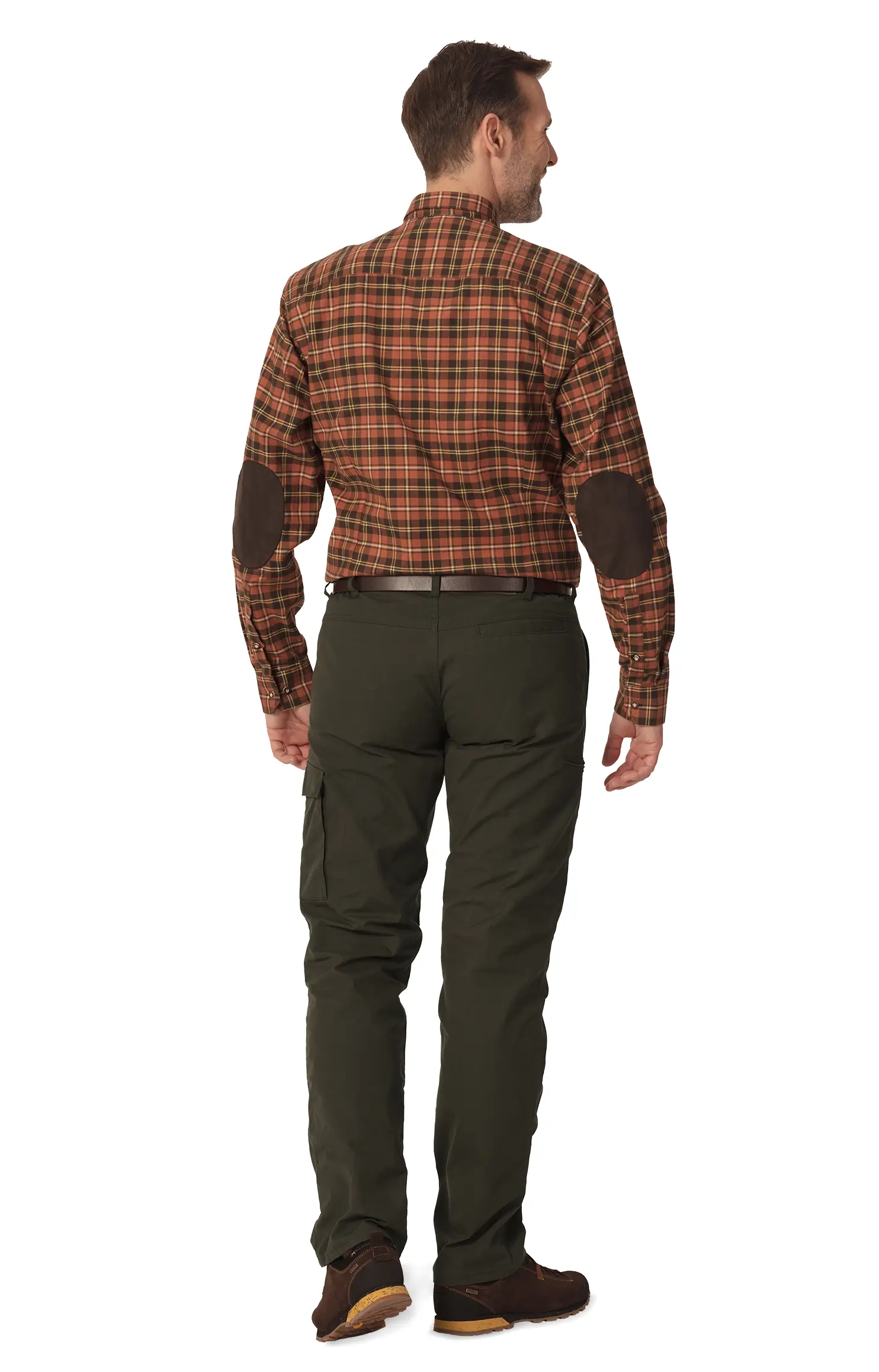 Koszula w czerwono-brązową kratkę wyróżnia się ozdobnymi zamszowymi łatami na łokciach oraz guzikami z imitacją poroża, które dodają jej charakteru. Miękki, oddychający materiał doskonale radzi sobie z wilgocią, zapewniając komfort przez cały dzień.