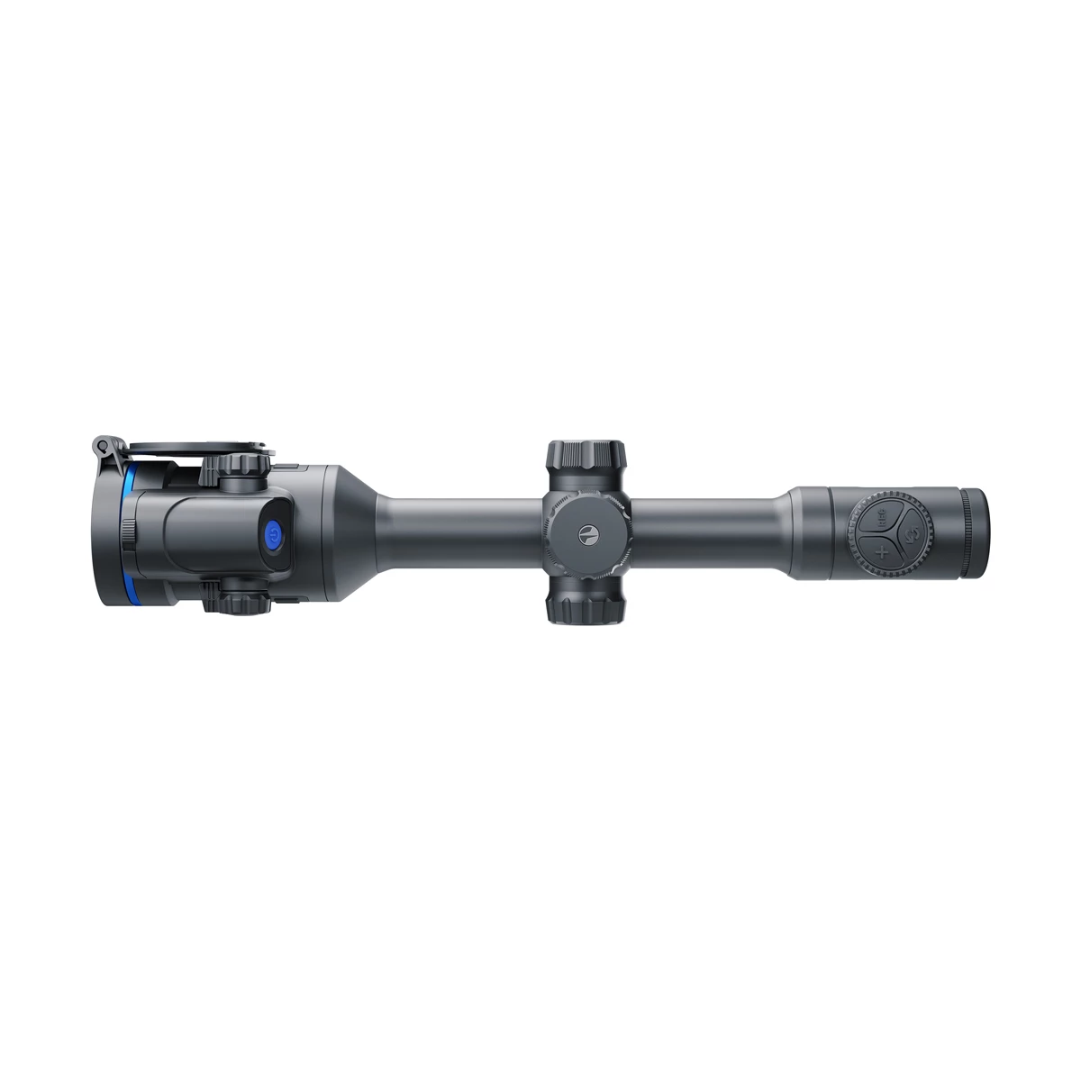 Thermion DUO DXP50 to celownik, który pozwala na szybkie przełączanie pomiędzy trybem dziennym a termowizyjnym jednym przyciskiem. Funkcja Picture in Picture umożliwia jednoczesne wyświetlanie obrazu z obu kanałów, zapewniając maksymalną kontrolę i orientację w terenie.