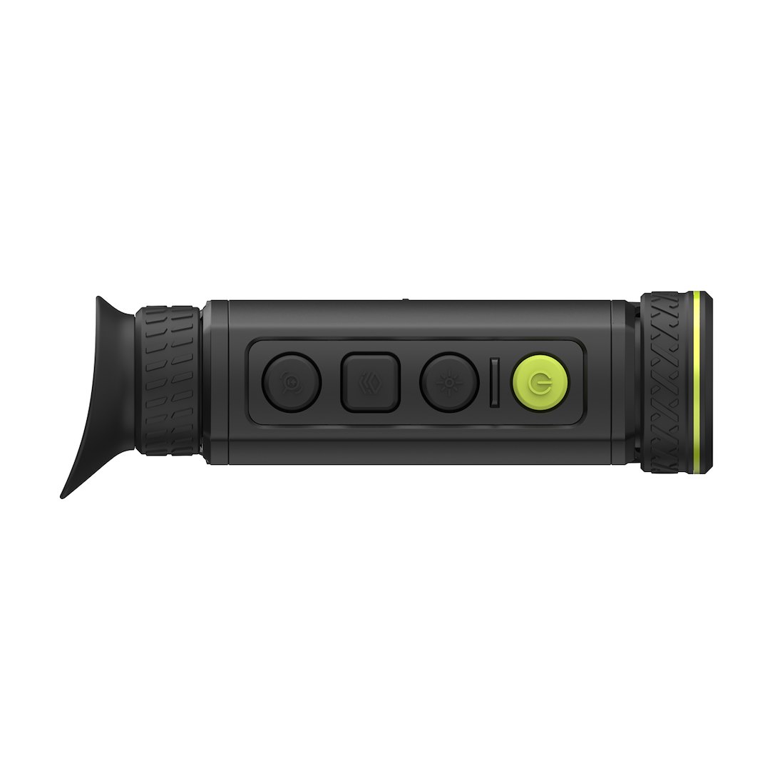 Konstrukcję termowizora oparto na wytrzymałym i lekkim stopie magnezu, dzięki czemu całość waży zaledwie 375 gramów. Urządzenie zasilane jest jednym wymiennym akumulatorem 18650, wystarczającym na 6 godzin pracy (w zestawie znajdują się dwa ogniwa). Szczelnie spasowana obudowa posiada certyfikat IP67, co gwarantuje całkowitą odporność na pył i wodę, a elektronika utrzymuje pełną sprawność operacyjną w ekstremalnych temperaturach od -30°C do +55°C.