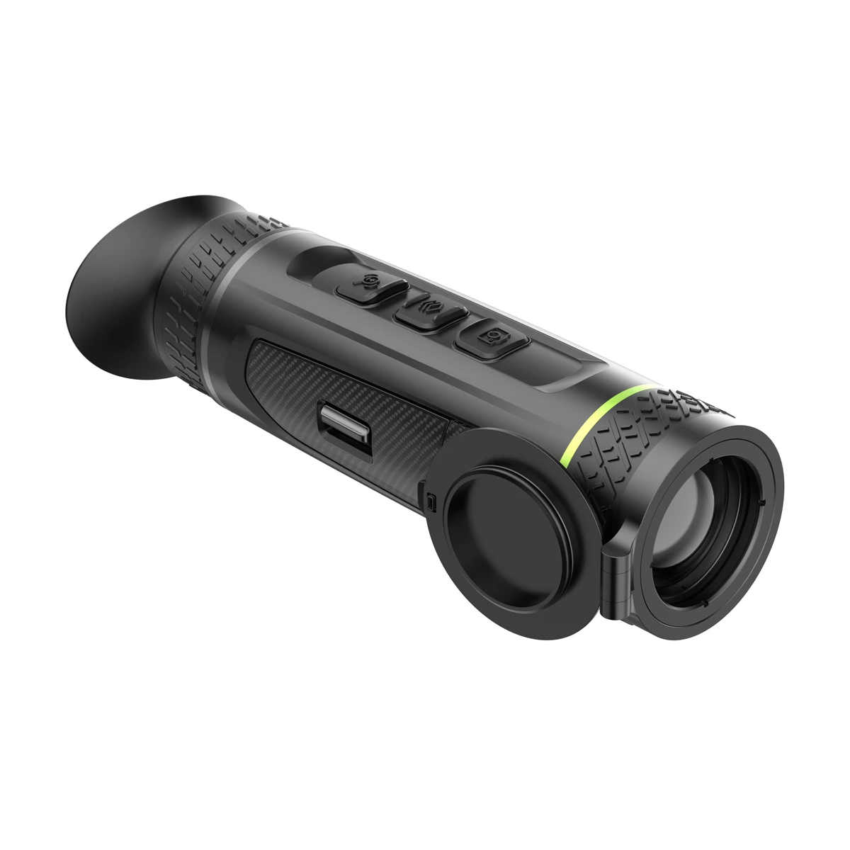 Termowizor zaprojektowano z myślą o ekstremalnych warunkach terenowych. Zasilanie oparto na popularnym, wymiennym akumulatorze 18650, co zapewnia do 7,5 godziny ciągłej pracy na jednym ogniwie. System łatwego dostępu pozwala na błyskawiczną wymianę baterii w całkowitych ciemnościach, zapobiegając niechcianym przerwom w polowaniu. Solidna konstrukcja bez problemu znosi skrajne temperatury (od -30 do +55 °C), a metalowa osłona obiektywu skutecznie chroni cenną optykę przed zarysowaniami podczas przedzierania się przez gęste młodniki. Wbudowana pamięć 64 GB oraz moduł Wi-Fi pozwalają na swobodne nagrywanie i udostępnianie najciekawszych momentów z łowiska prosto na Twój smartfon.