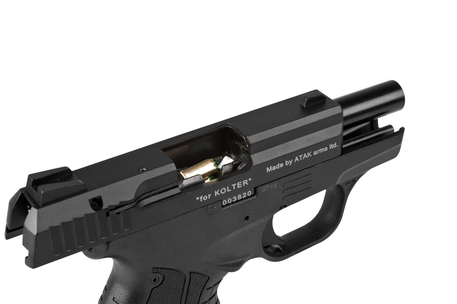 Szkielet, zamek, lufa oraz magazynek zostały wykonane z wytrzymałego metalu i osadzone w ergonomicznym, wstrząsoodpornym polimerowym korpusie. Całość posiada głębokie, czarne wykończenie, charakterystyczne dla broni taktycznej. Przed przypadkowym strzałem chroni zewnętrzny bezpiecznik nastawny. Największą zaletą prawną jest przypisany do numeru seryjnego Certyfikat Broni Alarmowo Sygnałowej z CLKP, który gwarantuje, że kupujesz w pełni legalny sprzęt bez konieczności wyrabiania pozwoleń.