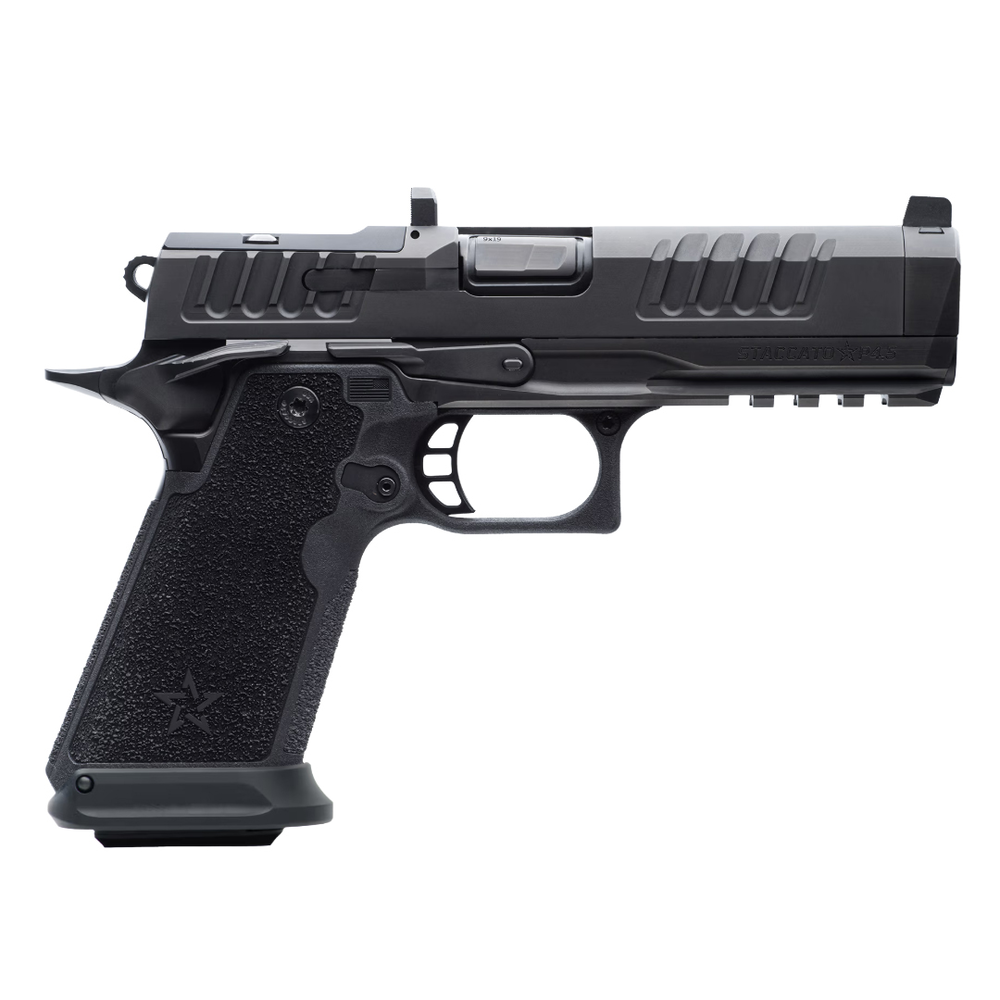 Inżynierowie Staccato przeprojektowali chwyt, pozbawiając go tradycyjnego bezpiecznika chwytowego, co pozwoliło uzyskać węższy, bardziej naturalny profil. Wyżej poprowadzona ostroga (beavertail) umożliwia bardzo wysokie chwycenie pistoletu, maksymalizując kontrolę nad bronią. Co więcej, pistolet jest w 100% obustronny – podwójne skrzydełka bezpiecznika, obustronny zrzut zamka oraz przekładalny zatrzask magazynka sprawiają, że strzelanie słabszą ręką lub praca zza zasłony taktycznej staje się płynna i całkowicie intuicyjna.