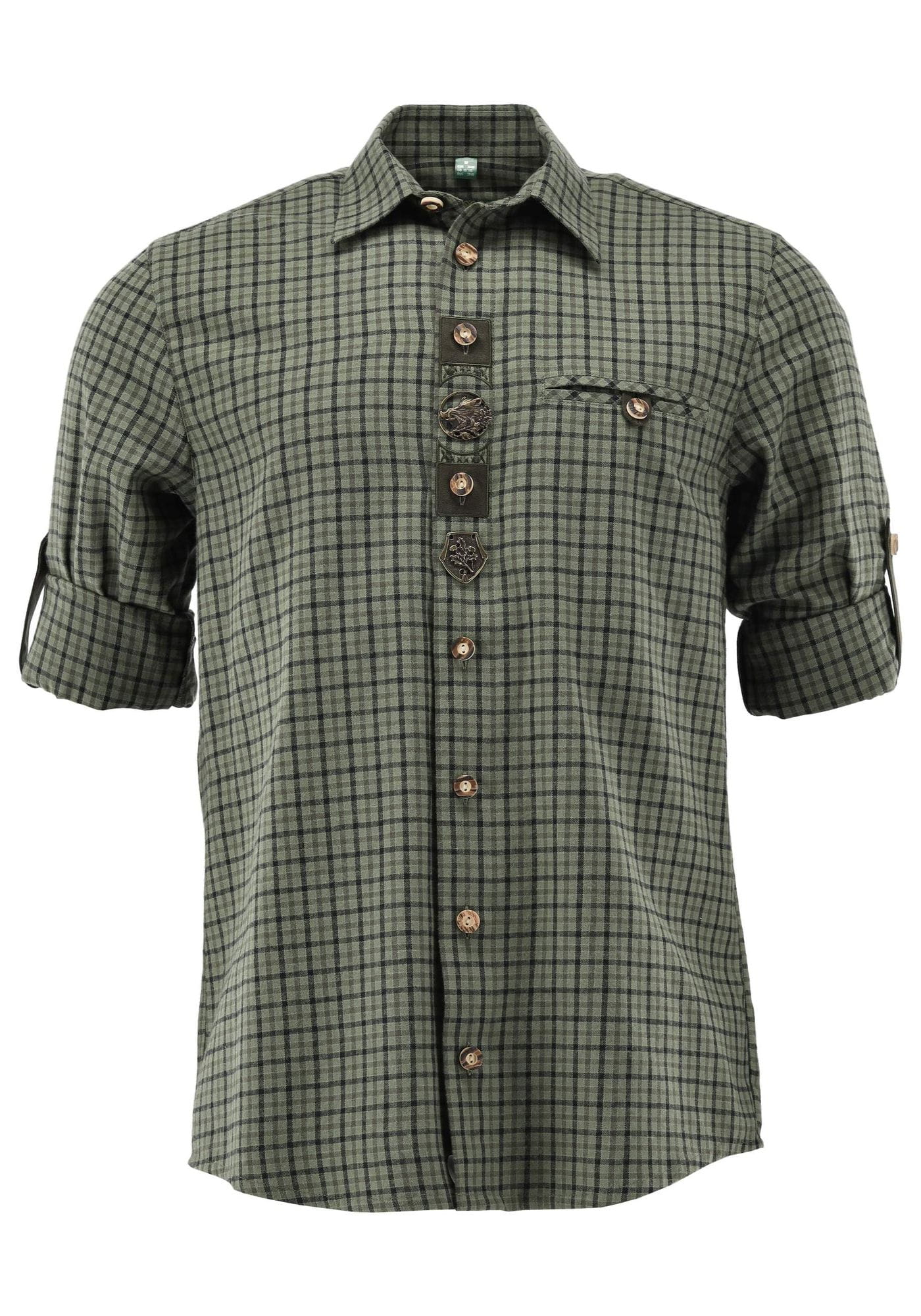 Tradycyjna flanelowa koszula myśliwska OS Trachten w kolorze oliwkowym to kwintesencja klasycznego stylu i niezawodności w jednym. Dzięki niezwykłej dbałości o detale, bogatym zdobieniom i wytrzymałym materiałom, odzież ta doskonale sprawdzi się podczas każdej myśliwskiej okazji – od polowania, po uroczyste zbiórki i spotkania w kole łowieckim.