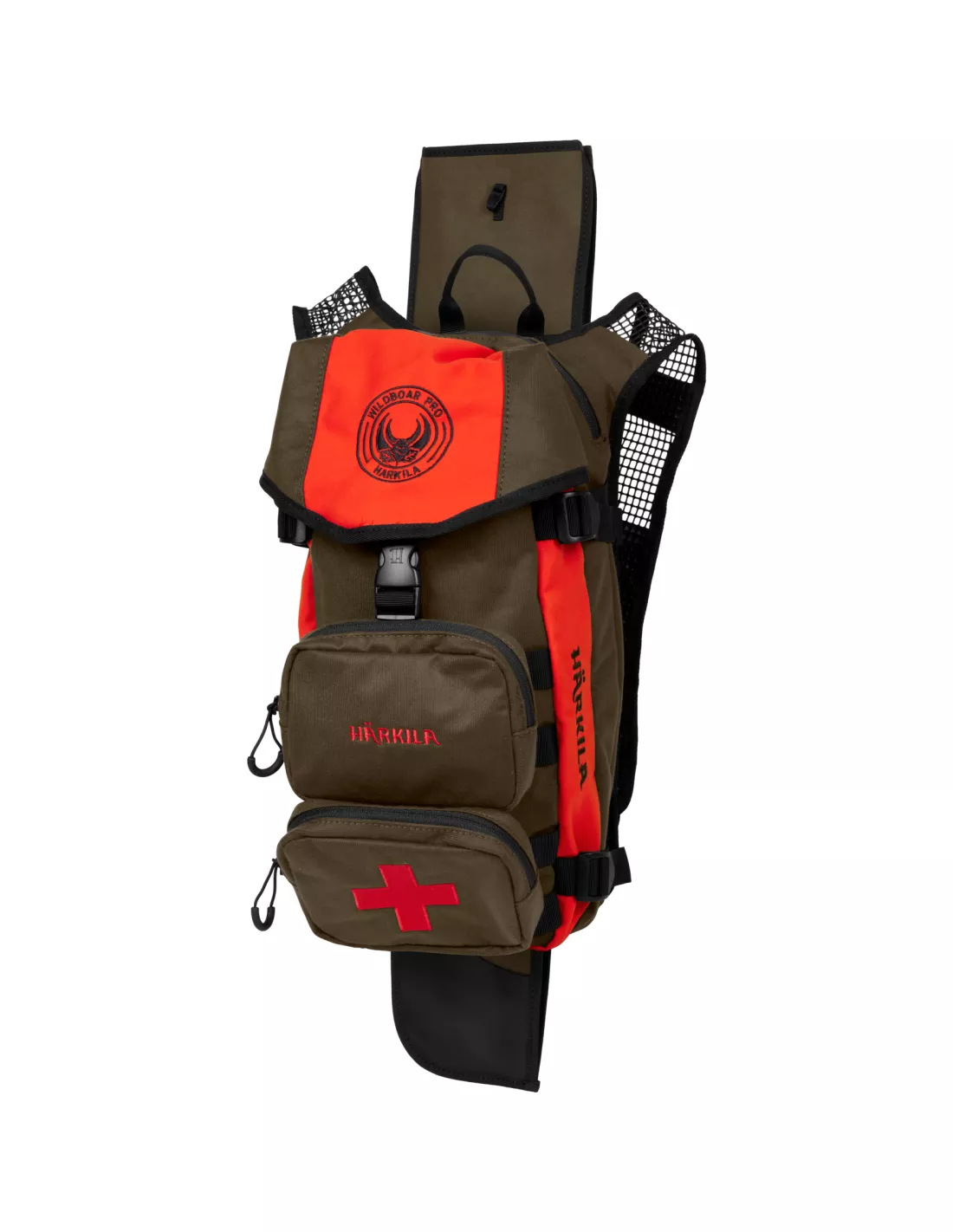 Liczne kieszenie i przegródki umożliwiają łatwe uporządkowanie wyposażenia, a system szybkiego mocowania Härkila Quick Release pozwala błyskawicznie przymocować lub odłączyć broń oraz inne akcesoria. Kompatybilność z systemem hydracyjnym zapewnia wygodne nawadnianie podczas marszu.