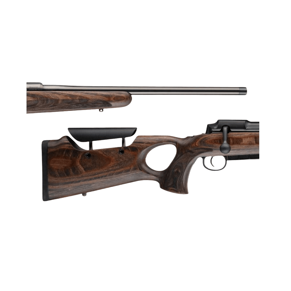 MAUSER 25 MAX to zaawansowany sztucer myśliwski łączący maksymalną kontrolę z błyskawiczną szybkością działania. Osada typu Thumbhole wykonana ze specjalnie impregnowanego laminatu bukowego zapewnia najwyższą stabilność i odporność na warunki atmosferyczne. To ergonomiczne rozwiązanie zwiększa komfort użytkowania i precyzję strzału, nawet podczas długich polowań w trudnym terenie.