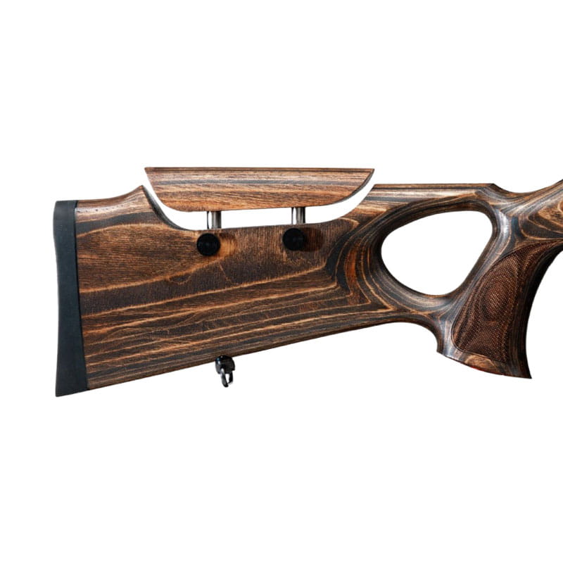 Największym atutem modelu GTI jest jego unikalna osada wykonana z niezwykle wytrzymałego laminowanego drewna. Konstrukcja z otworem na kciuk (thumbhole) wymusza na strzelcu idealnie luźne ułożenie dłoni na chwycie pistoletowym. Dzięki temu palec wskazujący naturalnie układa się na języku spustowym, eliminując napięcia mięśniowe, które są główną przyczyną zrywania strzałów. Laminat jest odporny na warunki atmosferyczne i nie odkształca się, co gwarantuje stabilność punktu trafienia przez lata.