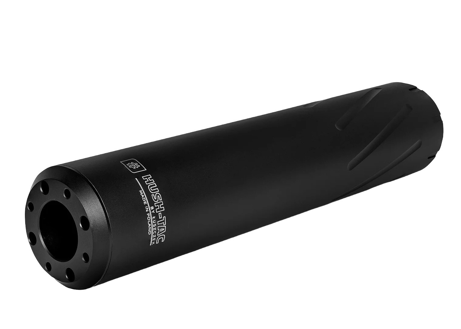 Tłumik myśliwski Hush-Tac Standard, widok ogólny prezentujący kompaktową, cylindryczną konstrukcję urządzenia wylotowego o wadze 415 gramów, przeznaczonego do redukcji hałasu i odrzutu sztucera.