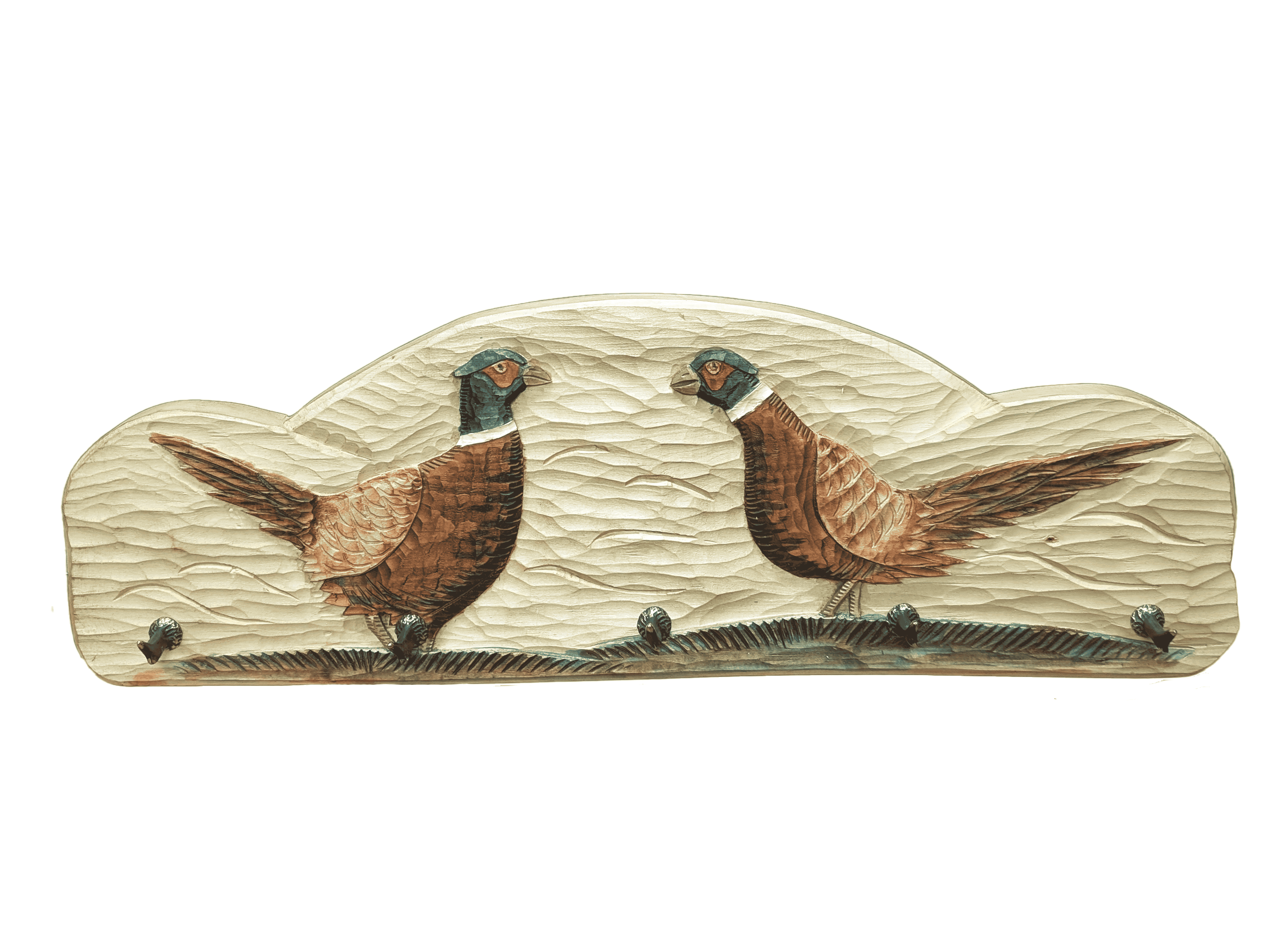 Ręcznie rzeźbiony drewniany wieszak z bażantami