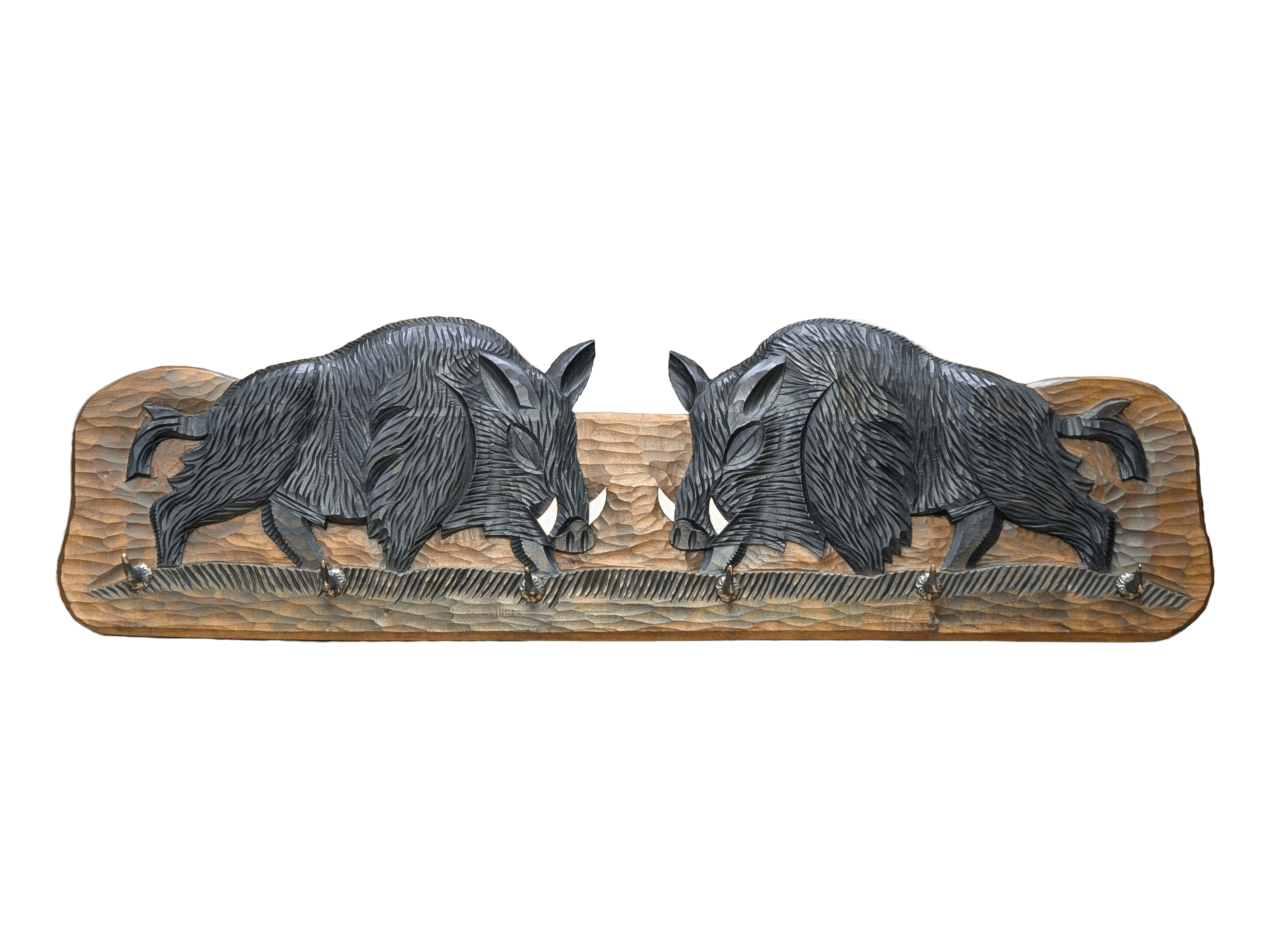 Symbol pasji łowieckiej i szacunku do przyrody, wieszak z wyrzeźbionymi dzikami świetnie sprawdzi się w myśliwskiej chacie, domku letniskowym czy jako unikalna dekoracja w domu. Dzięki ręcznej pracy każdy egzemplarz jest jedyny w swoim rodzaju, co czyni go wyjątkowym prezentem na urodziny, święta czy rocznicę.